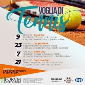«In questa fase il nostro motto è quello di cambiare la vita alle persone. Per questo Forum si sta adoperando in questa direzione e il Forum Summer è l’occasione per creare tutte quelle situazioni che possano essere piacevoli sia dal punto di vista della proposta sportiva ma che abbia anche una componente divertente. La volontà è quella di tenere compagnia in questa fase di ripartenza, motivare le persone a fare attività fisica che da tutti in questi mesi è stata riconosciuta come indispensabile e positiva per rinforzare le difese immunitarie, perché aiuta a scaricare le tensioni, contribuisce a creare socialità. Vorremmo essere anche di «supporto a tutti coloro che non sono ancora nostri soci ma che attraverso questi eventi possano conoscerci e apprezzare il nostro metodo e le nostre attività»