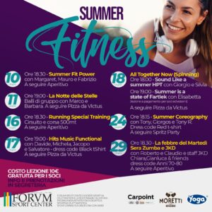 Tutto questo all’interno di una struttura sicura all’interno della quale trovare il proprio percorso di crescita e di benessere. Un percorso che è possibile scoprire, apprezzare e iniziare già dagli appuntamenti estivi del Forum Summer e poi proseguire per tutto il resto dell’anno.